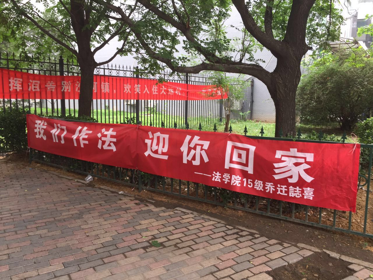 7月5日和6日,法学院2015级本科生共46人分两批搬迁至学院路校区,分别入住大运村6号公寓和校内7号公寓。学院党委副书记李俊良老师、分团委书记庞瑜老师到场指导和参与搬迁工作。学院2014级本科生党支部的志愿者们也早早到场迎接,拉起了欢迎横幅,购买矿泉水和雪糕,营造了温馨团结的搬迁氛围。
