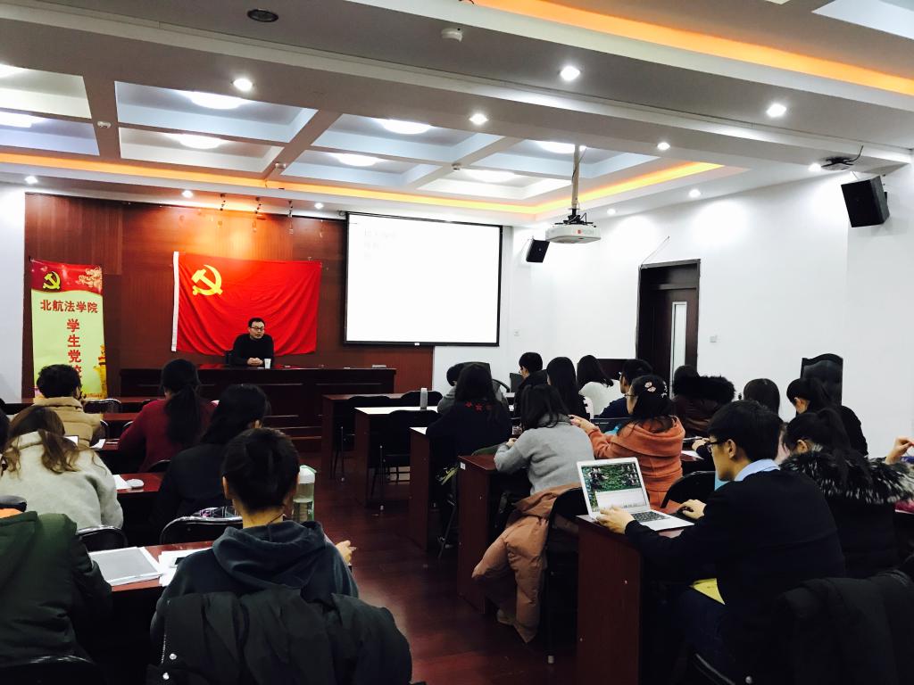 11月27日晚,北航法学院学生党校第二课如期而至,虽是周末,但学生党员的学习热情丝毫不减。党校第二课上,法学院党委委员、副院长泮伟江为全体党校学员做了题为“超大规模陌生人群治理,观察中国法治转型的新视角”的党课报告。