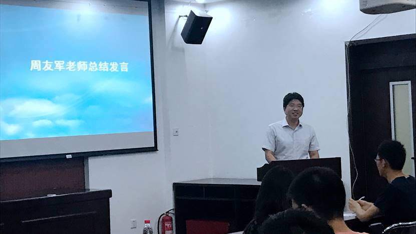 最后,周友军老师为开幕式及学术经验交流会做总结发言。周老师分别从阅读、选题、写作三个方面向同学们传授了自己的学术经验与心得。周老师指出,论文是阅读和思考之余的副产品,同学们应当充分储备知识,站在巨人肩膀上进行思考,恰当提炼自己的观点,才能写出有思想的论文。同时周老师指出,在论文写作中,第一选题至关重要,好的选题是写作成功的一半;第二要注重创新,体现文章亮点;第三要遵守学术伦理,既要杜绝形式上的粘贴复制,也要杜绝思想上的剽窃。
