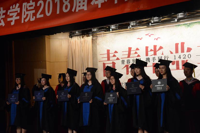 6月15日下午14:00,北航法学院2018届本科生毕业典礼拉开帷幕,典礼由法学院党委副书记张渊主持。仪式的开始,首先对2018届本科生中优秀班集体及先进个人进行了颁奖表彰:北京市先进班级、北航十佳班集体、北京市三好学生、北京市先锋杯优秀团员、校级及北京市级优秀毕业生等奖项的获得者先后登台领取了荣誉奖状。