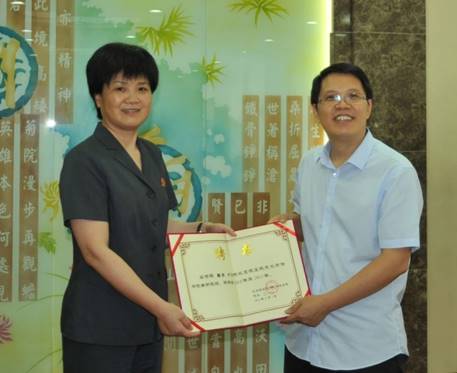 随后,王琪全书记代表北航法学院向清江浦法院赠送“天宫2号”模型纪念品,并为实习导师代表颁发聘书。