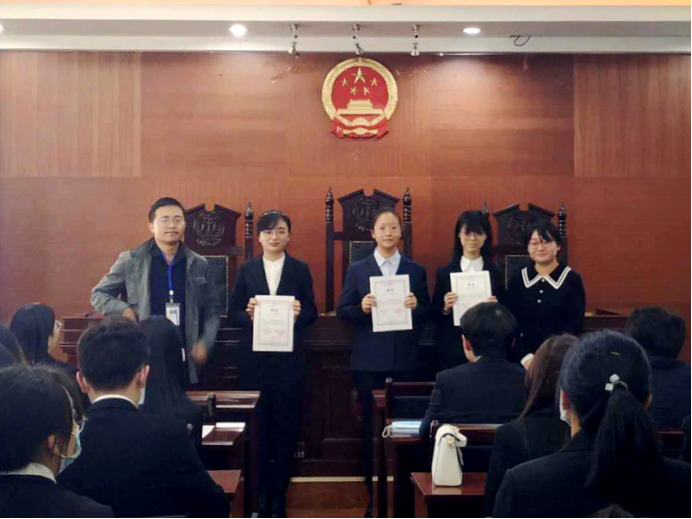 大会第七项:监票人公布选举投票结果。通过与会代表投票,崔莹莹、陆睿、杨阳三位同学当选法学院第二十届学生会主席团成员。法学院党委副书记张渊老师、分团委书记邹沛东老师为法学院第二十届主席团成员颁发聘书。